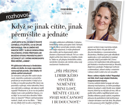Více o online workshopu a vedené meditaci PŘEPIS LIMBICKÉHO OTISKU najdete ZDE. Nejbližší přímý přenos proběhne v tomto termínu. „Doplníte si to, co vám v životě chybělo, vylepšíte, co se úplně nepovedlo. Tím se změní vás emoční svět,“...