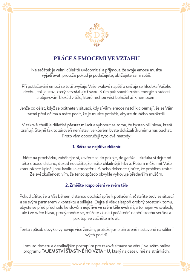 „Emoce jsou pro náš život i vztah důležité, a pokud je potlačujeme, stávají se toxickými – ničí nás samotné, náš vztah, vášeň i všechny naše city.”