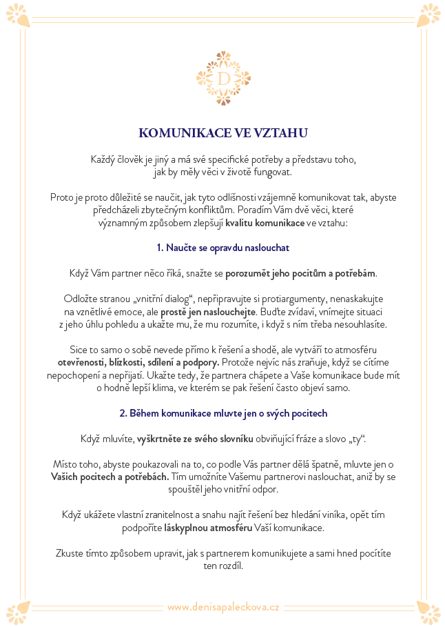 Ve videu se dozvíš, jak s partnerem komunikovat způsobem, který nevytváří napětí a nenarušuje vztah, ale naopak podporuje větší porozumění.