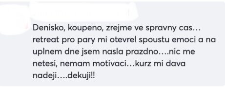 Během 3 dnů získáš odvahu ke změně a začneš ve svém životě a (současném či budoucím) partnerství dělat nové kroky.