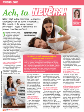 V horším případě jsou rány tak hluboké, že ve vztahu vznikne zeď, kterou není snadné zbořit. V případě nevěry vždy riskujeme, že to původní vztah nepřežije. I když to někdy začíná jako malé, zdánlivě nevinné zpestření. Je jen málo páru, kteří jsou ochotní žít s tím, že partner či partnerka mají milence a milenky. A i pokud je to vědomá volba v tzv. otevřeném vztahu, neznamená to, že je to snadné a bez emocí.