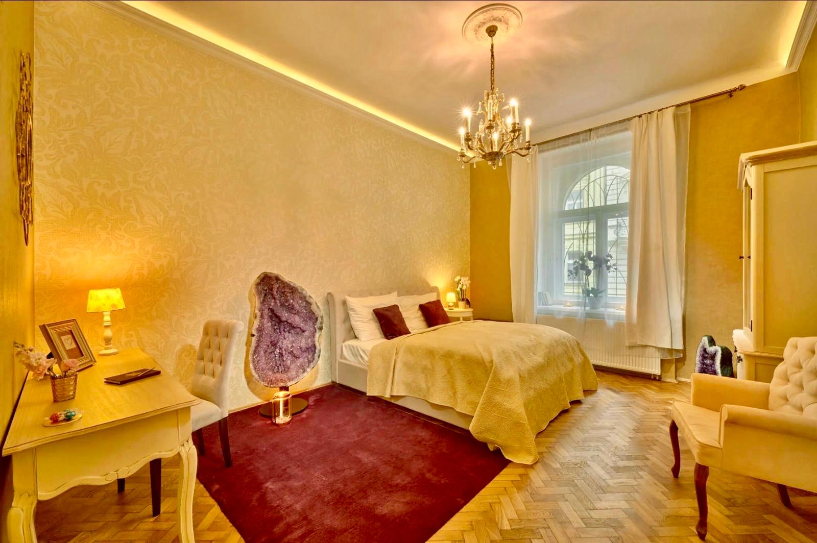 Vybudovali jsme pro Vás nádherné místo v Praze na Vinohradech – prvorepublikový byt plný vzácných ametystů a krystalů.