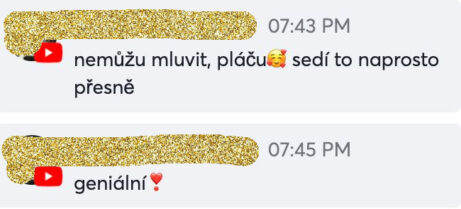 „Velmi silné pro mě bylo, když jsem ji požádala, ať pojmenuje mé silné stránky, můj potenciál a co potřebuji k jeho naplnění. Na co mám zaměřit pozornost, a kde naopak energii ztrácím, a čím sama sebe brzdím. Jsou to pro mě neskutečně cenná uvědomění!“