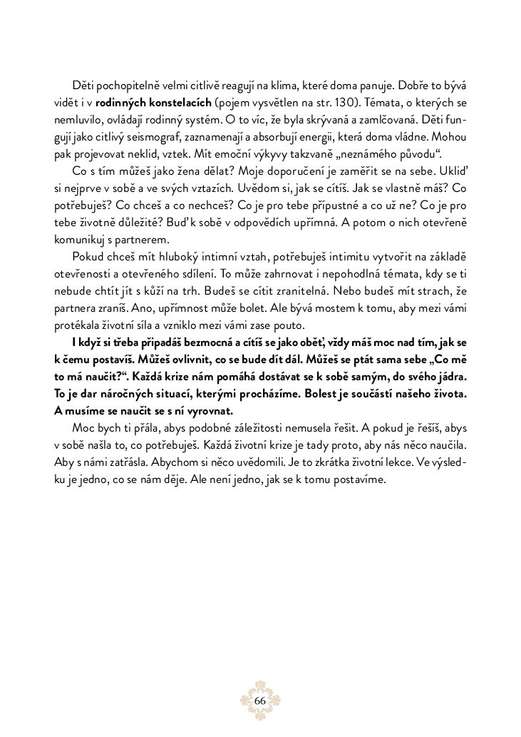 Kniha obsahuje spoustu praktických a užitečných rad a také inspirujících pohledů na věc. Za mě je tedy skvělá, můžu ji kdykoliv otevřít na jakékoliv straně a vždy najdu v textu to, co potřebuji zrovna vědět. Je inspirující a zároveň velmi léčivá.
