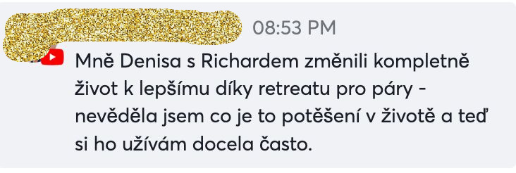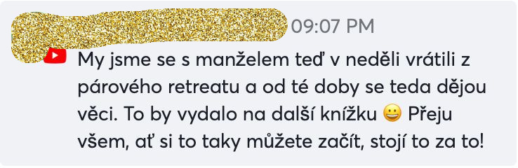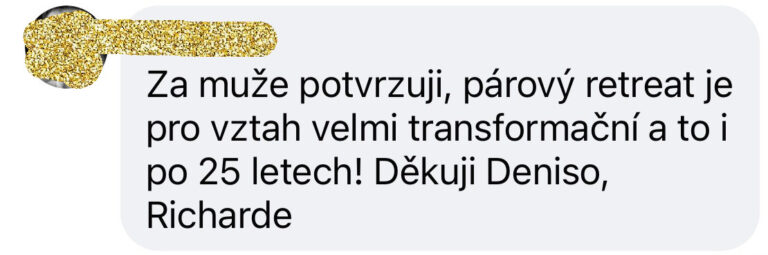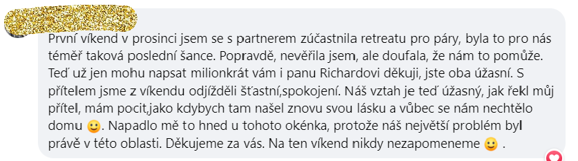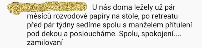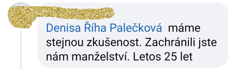 „Děkuji ze srdce, čím vším jsme si díky vám s mým mužem a otcem mých dětí dovolili projít. Do čeho jsme se s důvěrou pustili a na čem nyní můžeme svůj vztah stavět.
