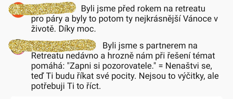 „Včera mi tekly slzy dojetí. Bylo to při závěrečném kruhu kurzu pro páry na Váňově statku. Na 5-denním kurzu se sešlo 60 lidí.