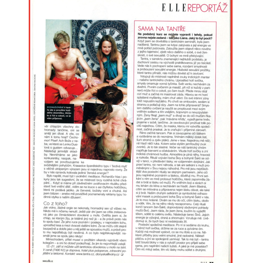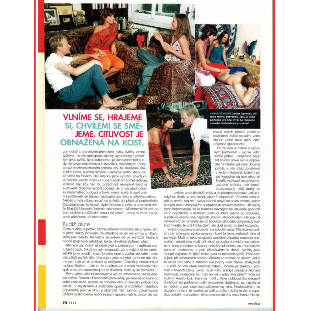 Vzpomínám, jak jsem se v roce 2003 rozhodovala mezi stáží v berlínském parlamentu a pořádáním kurzu tantry. Hádejte, co vyhrálo? … Z prvního semináře, který jsme spolu s Richardem vedli v dubnu 2003 v Horní Jelení vznikla hned 3-stránková reportáž v časopise ELLE.